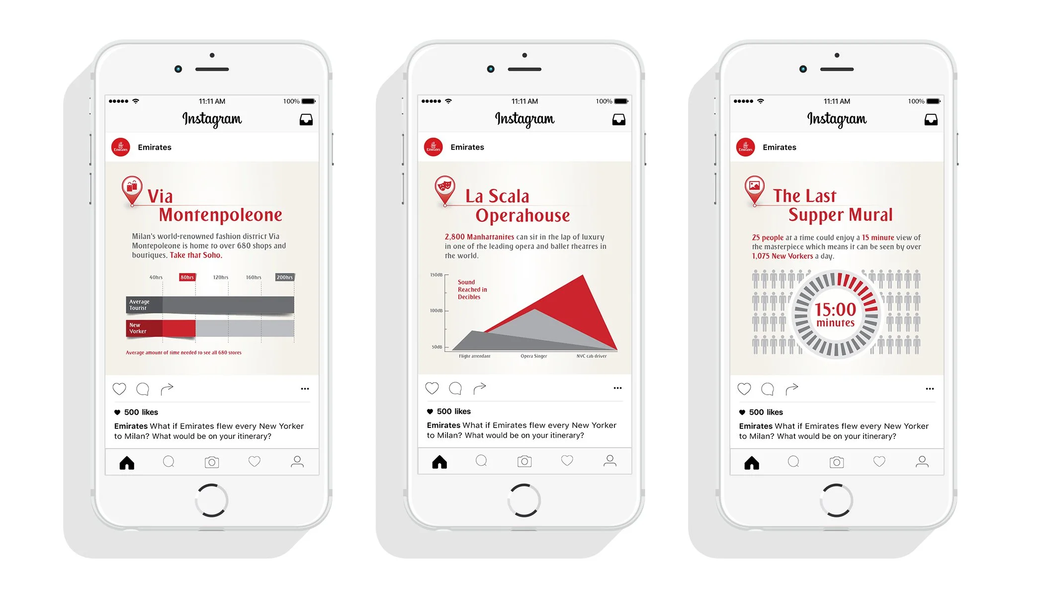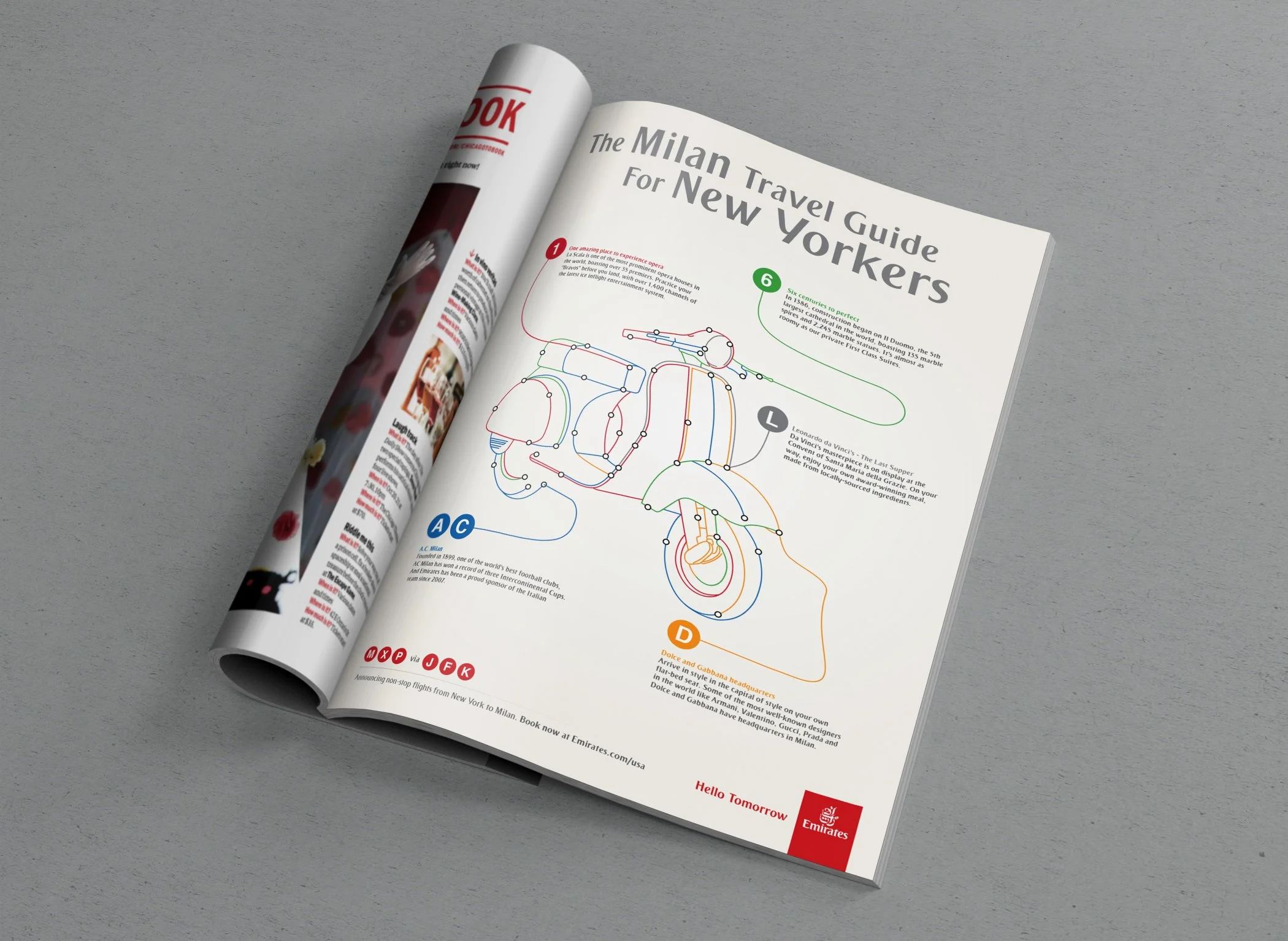 The Milan campaign elevated Emirates’ destination storytelling—balancing its luxury aesthetic with a more human, design-driven sensibility. By connecting two iconic cities through visual wit and cultural detail, the work expanded how Emirates could express its brand: not just as a carrier of passengers, but as a connector of worlds.