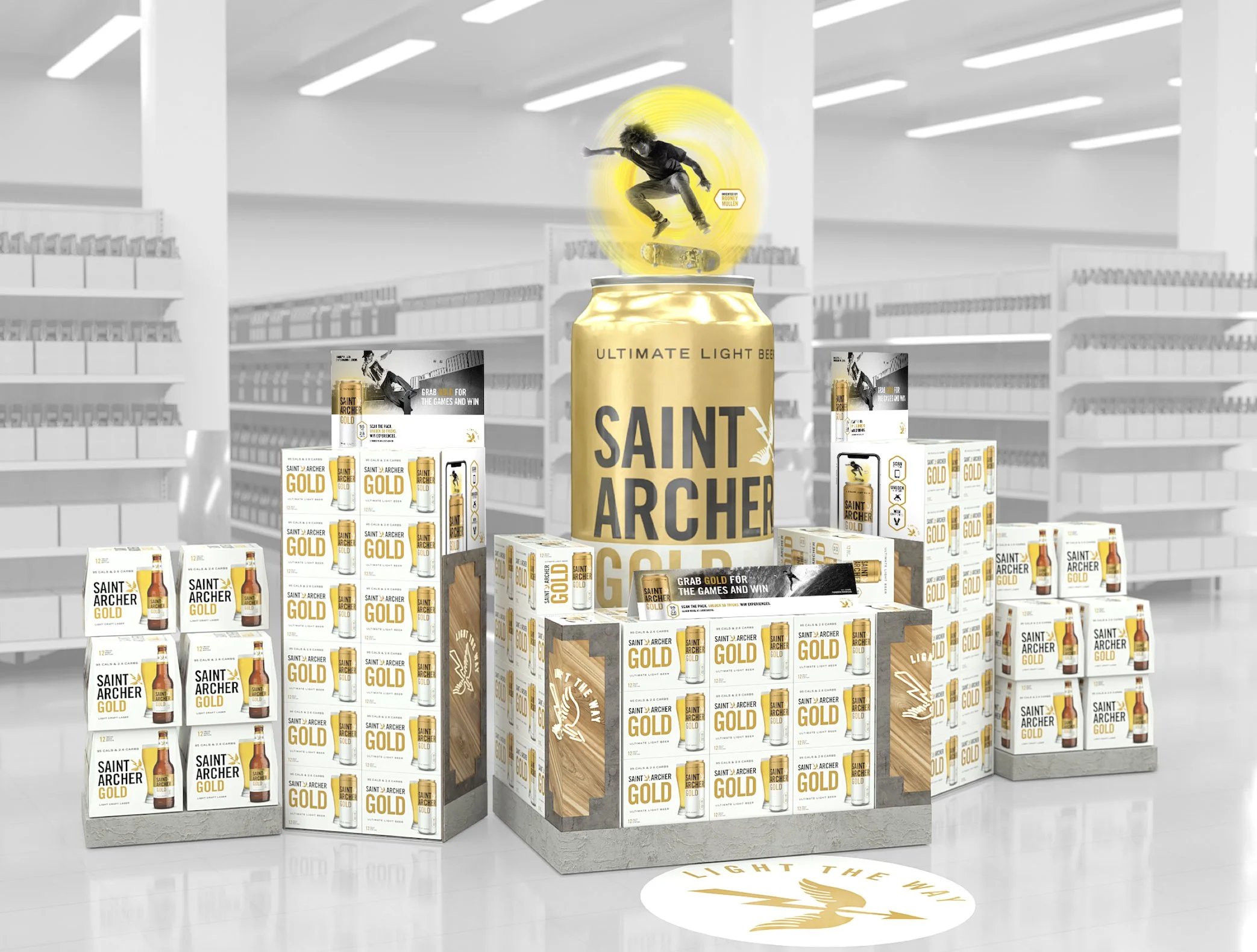 Retail Podiums: Olympic-style displays physically elevated Saint Archer Gold above competitors, creating symbolic stature and disruptive presence at retail.
