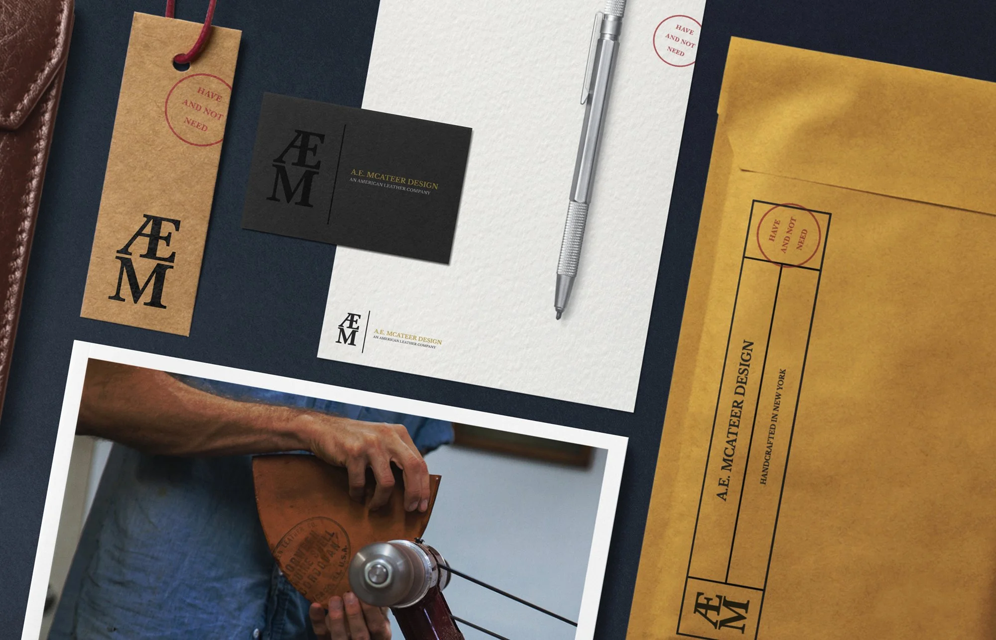 A.E. McAteer is a New York–based studio known for meticulously handmade leather and metal goods, produced by founder Andrew McAteer in his Astoria workshop. I worked with Andrew to build a visual identity that honored his craftsmanship and heritage, while giving the brand a refined, scalable system to use across products, packaging, and digital channels.