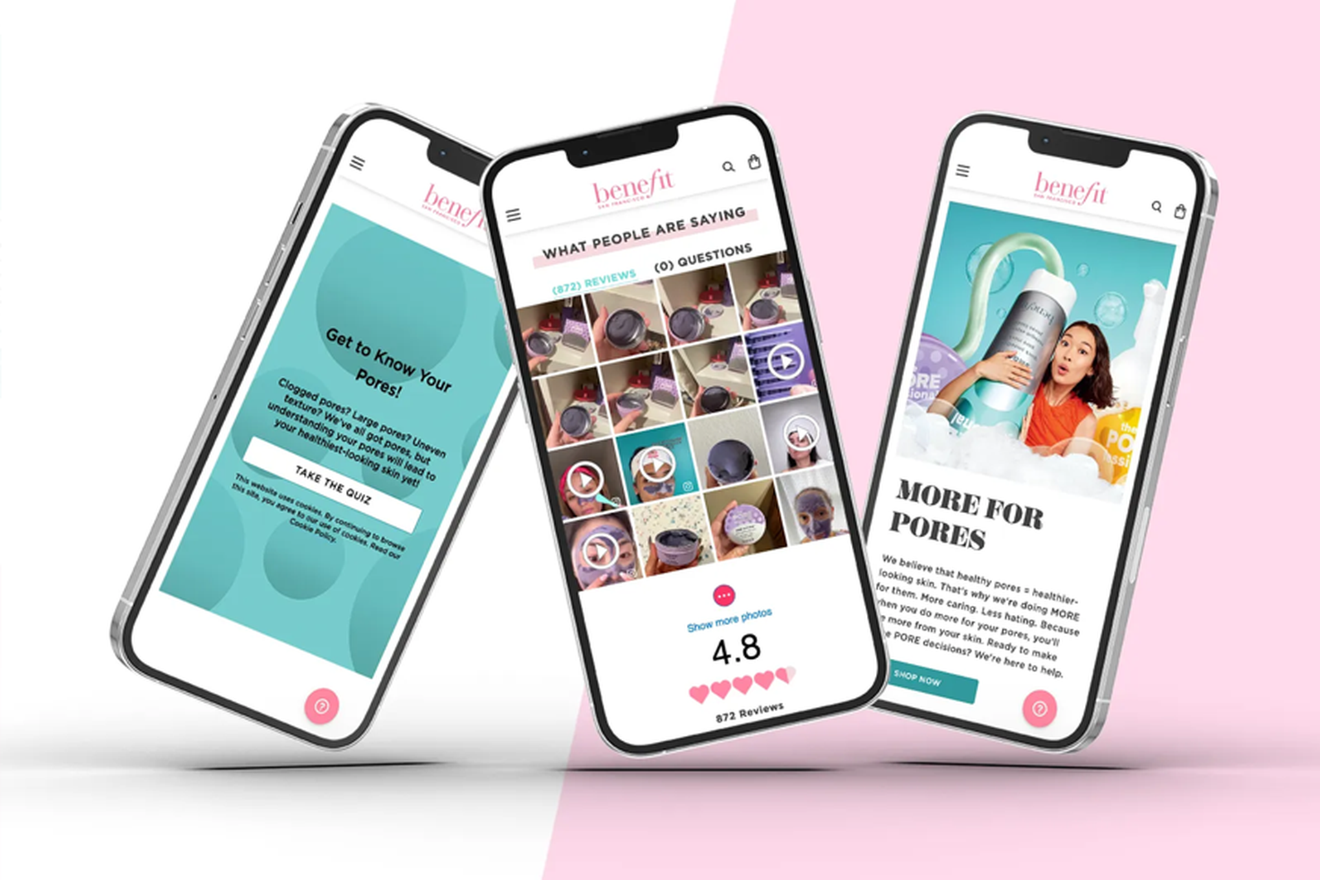 Benefit had strong products and a playful brand voice, but no cohesive place to guide shoppers through its pore-care story. The site was due for a larger redesign the following year, so we had to work inside an existing system with a limited budget for new components. The challenge was to make the most of what already existed while introducing enhancements that felt seamless and scalable.