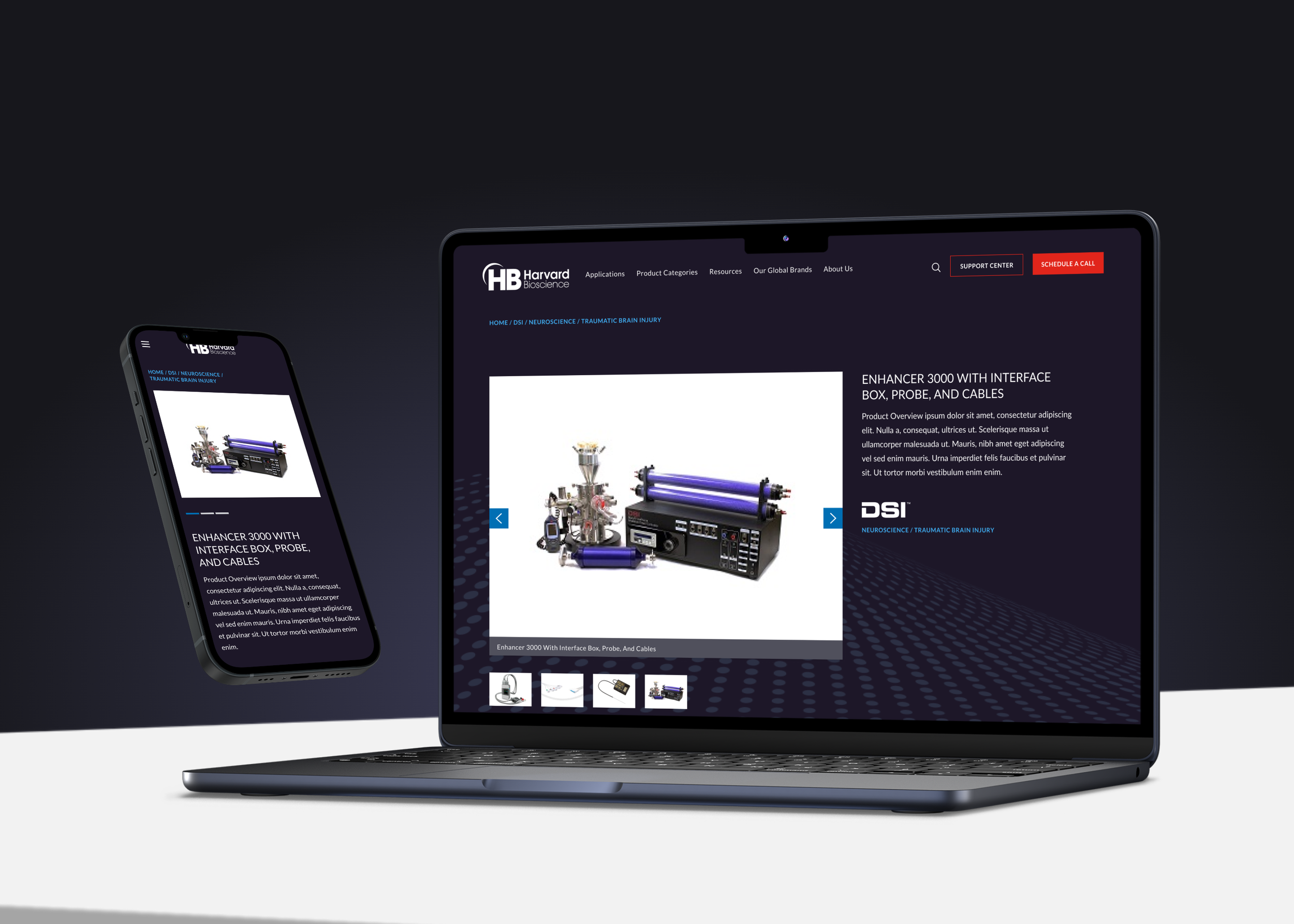 Harvard Bioscience oversaw 16 separate brands across the biosciences — each with its own CMS, content, and design. Customers didn’t even realize these brands were connected, leaving HBIO’s full scope invisible. I led the redesign, creating a unified platform that brought the brands together into one hub: a true one-stop shop for laboratories sourcing everything from software to critical devices.